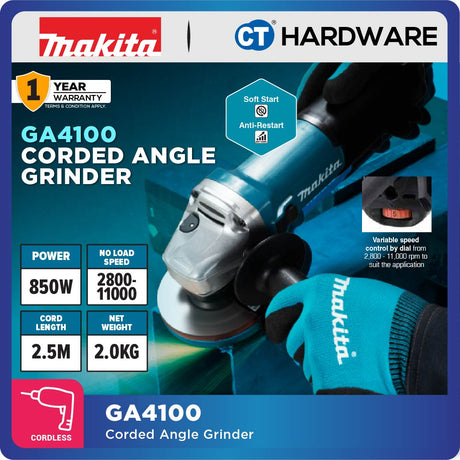 Makita GA4100 Corded Angle Grinder 4" | 850W | 11000RPM | 2.5M