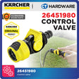 Intact tap adapters, hose connectors and hoses are the basis of effective watering. Kärcher therefore offers an entire range of accessories for connecting, disconnecting, regulating and repairing watering systems. For example, the Kärcher control valve – the ideal solution for regulating the water flow from 0 to maximum. It impresses with its ergonomic design and guarantees easy handling. The control valve can be used either as a connection between hose and sprinkler or – by means of the 2-way connector provided – to connect two hoses. The Kärcher control valve is compatible with all available hook-and-loop systems and all common hose diameters.