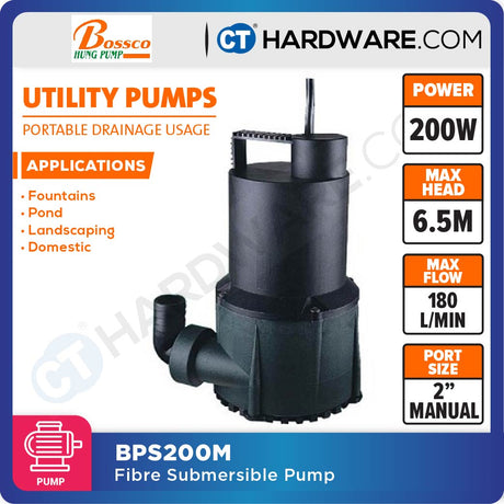 RM31.00RM34.00Unit price /UnavailableBOSSCO BPS200M FIBRE SUBMERSIBLE PUMP 200W | 180L/MIN | 6.5M | 1-1/4" [ MADE IN TAIWAN ]