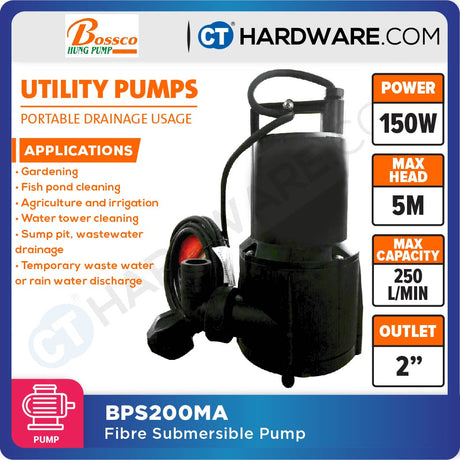 RM400.00Unit price /UnavailableBOSSCO BPS200MA FIBRE SUBMERSIBLE PUMP 1/4HP | 180L/MIN | 6.5M/H | AUTO | 1-1/4" [ MADE IN TAIWAN ]