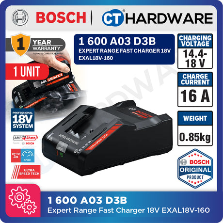 RM580.00Unit price /UnavailableVery low stockBosch 1 600 A03 D3B Expert Range Fast Charger 18V EXAL18V-160 1600A03D3B