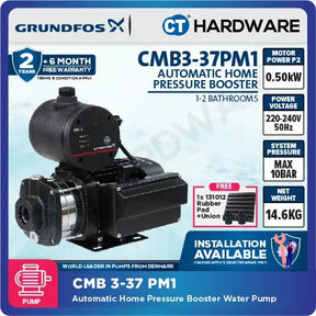 Experience consistent and optimal water pressure throughout your home with the Grundfos CMB3-37PM1 Automatic Home Pressure Booster Pump. Designed for residential applications, this efficient and reliable pump ensures a steady supply of water for all your household needs. Powered by a 0.5kW motor, it delivers a maximum flow rate of 70 liters per minute and a head of up to 37 meters, making it ideal for single and multi-story homes.