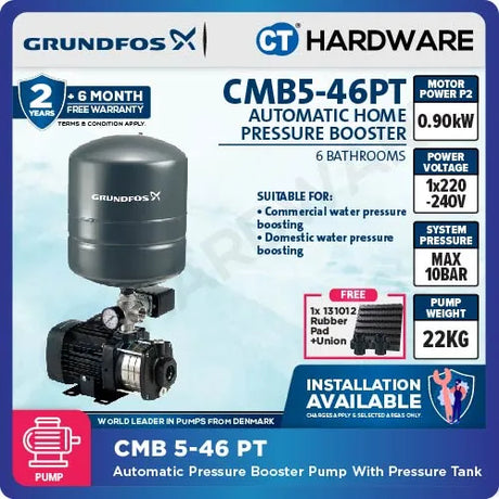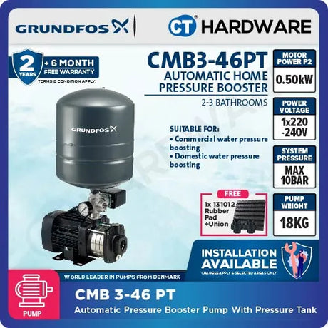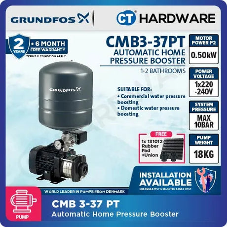 From RM2,450.00RM2,550.00Unit price /UnavailableLow stockGrundfos CMB3-37PM1 Water Pressure Booster Pump [0.5kW]