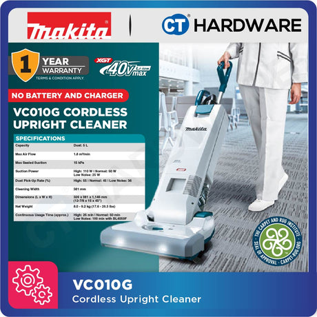 RM220.00RM326.00Unit price /UnavailableVery low stockMAKITA VC010GZ CORDLESS UPRIGHT CLEANER 40V 110W 15KPA 1.8M3/MIN 5L DUST WITHOUT BATTERY CHARGER