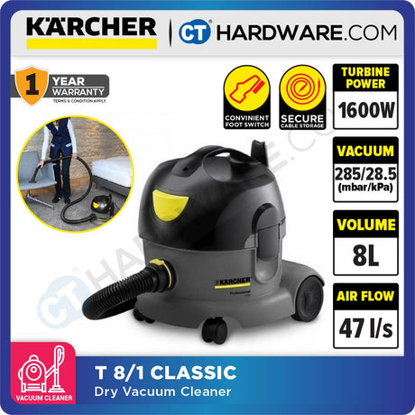 RM1,699.00Unit price /UnavailableVery low stockKarcher T 8/1 CLASSIC Dry Vacuum Cleaner 1600W 8l [T81 | 15271620]