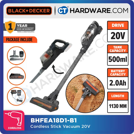 RM95.00RM99.00Unit price /UnavailableVery low stockBLACK+DECKER BHFEA18D1-B1 Cordless Stick Vacuum 20V C/W 1x 2.0AH Battery & 1x Charger