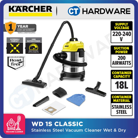 Karcher WD 5 SV Wet & Dry Vacuum Cleaner 1100W 25l Stainless Steel Tank [WD5SV | 16283500]