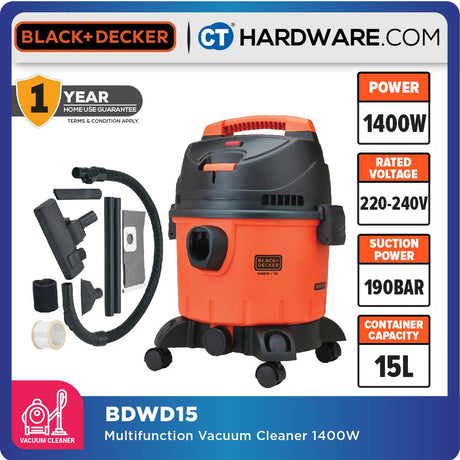 RM416.00Unit price /UnavailableVery low stockBLACK+DECKER BDWD15 Wet & Dry Vacuum Cleaner 15L 1400W 190MBar Suction