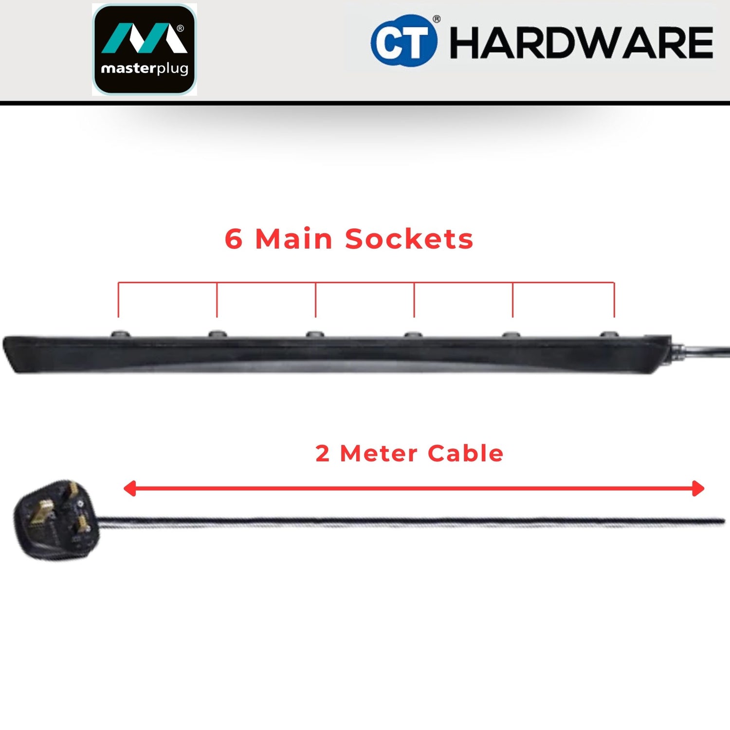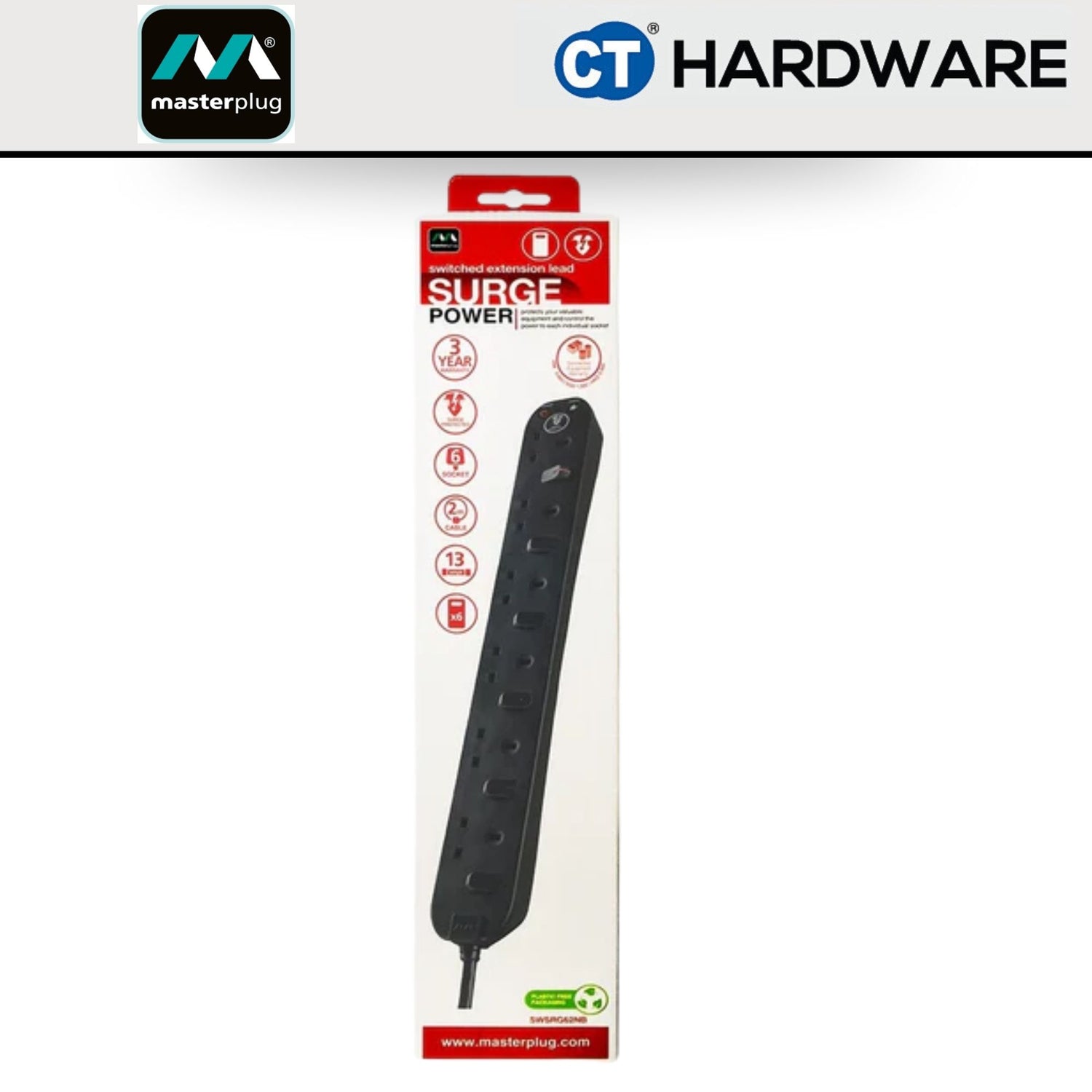 1 × Masterplug SWSRG62NB 6-Gang Surge Protected Switched Extension Lead (2m cable)