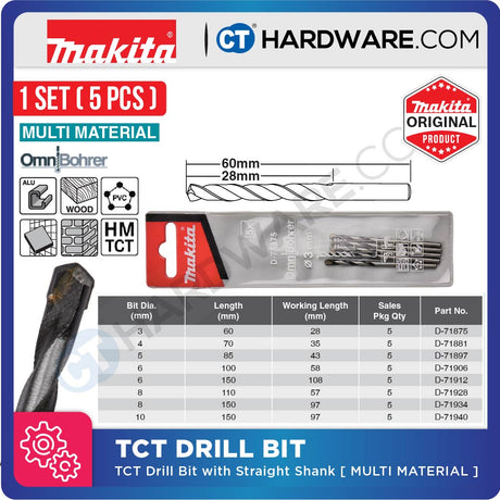 Regular priceFrom RM3.00Unit priceIn stockMakita TCT Drill Bit With Straight Shank 3-10 Mm Diameter | Multi Material Multiple