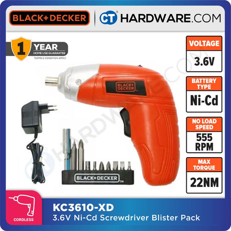 BLACK+DECKER KC3610-XD 3.6V CORDLESS SCREWDRIVER BLISTER PACK WITH DRIVER SET 10PCS BITS