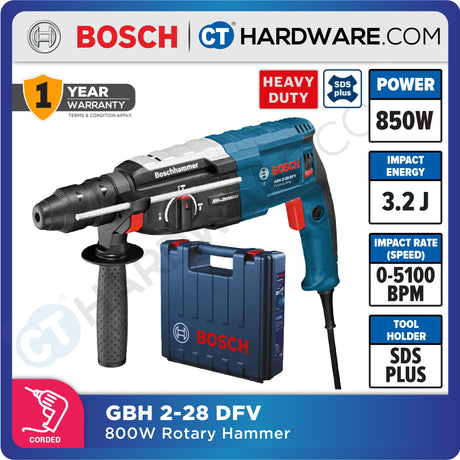 RM1,489.00Unit price /UnavailableVery low stockBosch GBH 2-28 DFV Professional Rotary Hammer with SDS Plus 850W [06112672L1 | GBH228DFV]