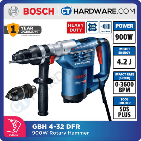 RM299.00RM309.00Unit price /UnavailableBackorderedBosch GBH 4-32 DFR Professional Rotary Hammer with SDS Plus 900W [06113321L0 | GBH432DFR]