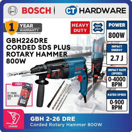 RM999.00Unit price /UnavailableVery low stockBosch GBH 2-26 DRE Professional Rotary Hammer with SDS Plus 800W [061125376C | GBH226DRE]