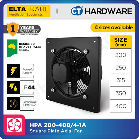 From RM45.00RM75.00Unit price /UnavailableIn stockELTA TRADE HPA4-1A SQUARE PLATE MOUNT AXIAL FLOW FAN [EXHAUST FAN] (10", 12", 14", 16")