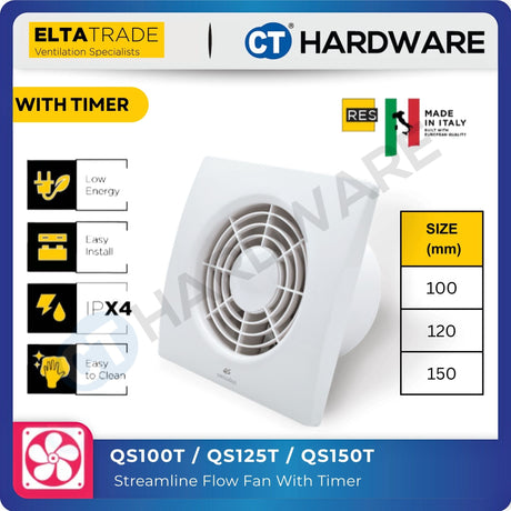 ELTA TRADE QS100T / QS120T / QS150T Streamline Axial Fan with Timer (4", 5", 6")