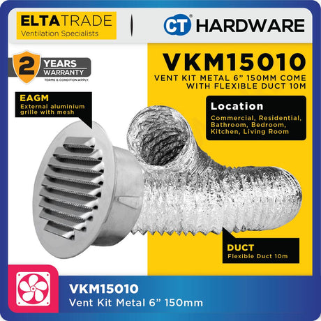 From RM24.00RM40.00Unit price /UnavailableLow stockELTA TRADE VKM15010 VENT KIT METAL 6" 150MM WITH FLEXIBLE DUCT 10 METER (EAGM + DUCT)