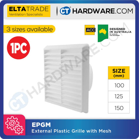 From RM93.00RM155.00Unit price /UnavailableLow stockELTA TRADE EPGB (4", 5", 6") EXTERNAL PLASTIC GRILLE WITH BACKDRAFT SHUTTER