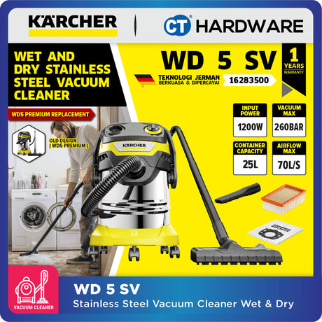 RM3,529.00RM3,999.00Unit price /UnavailableVery low stockKarcher WD 5 SV Wet & Dry Vacuum Cleaner 1100W 25l Stainless Steel Tank [WD5SV | 16283500]