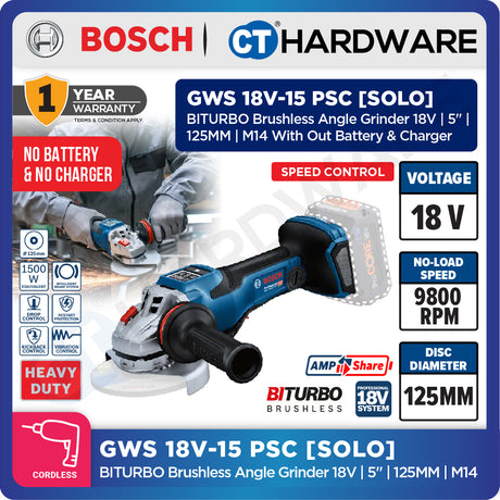 RM1,689.00Unit price /UnavailableBackordered Bosch GWS 18V-180 PC SOLO Cordless BITURBO BL Angle Grinder 18V 7" [GWS18V180PCSOLO]
