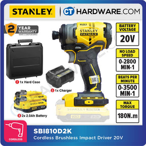 Stanley SBI810D2K Brushless Impact Driver 20V 180Nm Incl. 2x 2.0Ah Battery & Charger