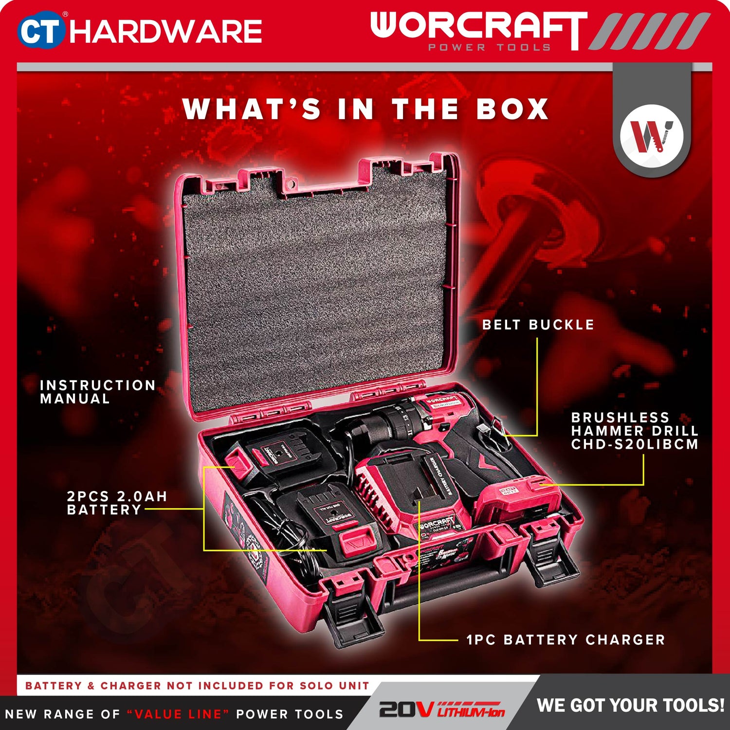 • 2x BATTERY PACK: 2x 2.0AH BATTERY AND 1x CHARGER