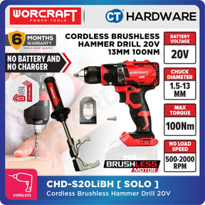 WORCRAFT CHD-S20LIBH Cordless Brushless Hammer Drill 20V | 13MM | 100NM [ CHDS20LIBH ] Gerudi Tukul Tanpa Wayar