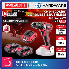 Worcraft CHD-S20LIBP Cordless Brushless Impact Drill Mesin Drill Tukul 20V come with 2x 2.0Ah Battery & 1x Charger