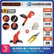 BLACK+DECKER GL5530-B1 String Trimmer / Grass Trimmer 550W 30CM Combo With B104 Cotton Glove & Garden Scissors