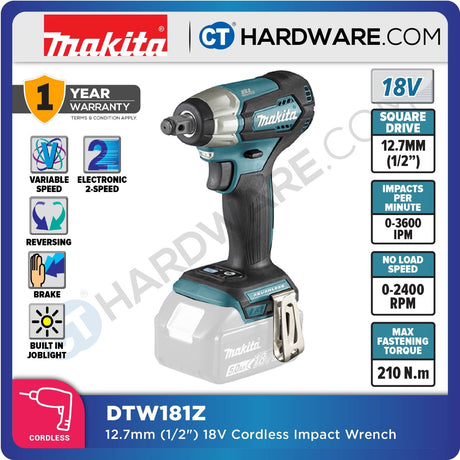 RM799.00RM1,351.00Unit price /UnavailableVery low stockMakita DTW181Z Cordless Brushless Impact Wrench 18V 1/2" DR. 210Nm [Set Pack]