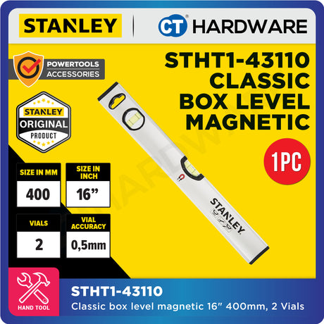 RM131.00Unit price /UnavailableVery low stockStanley STHT1-43110 | STHT1-43111 | STHT1-43115 Classic Magnetic Box Level | 40cm | 60cm | 150cm