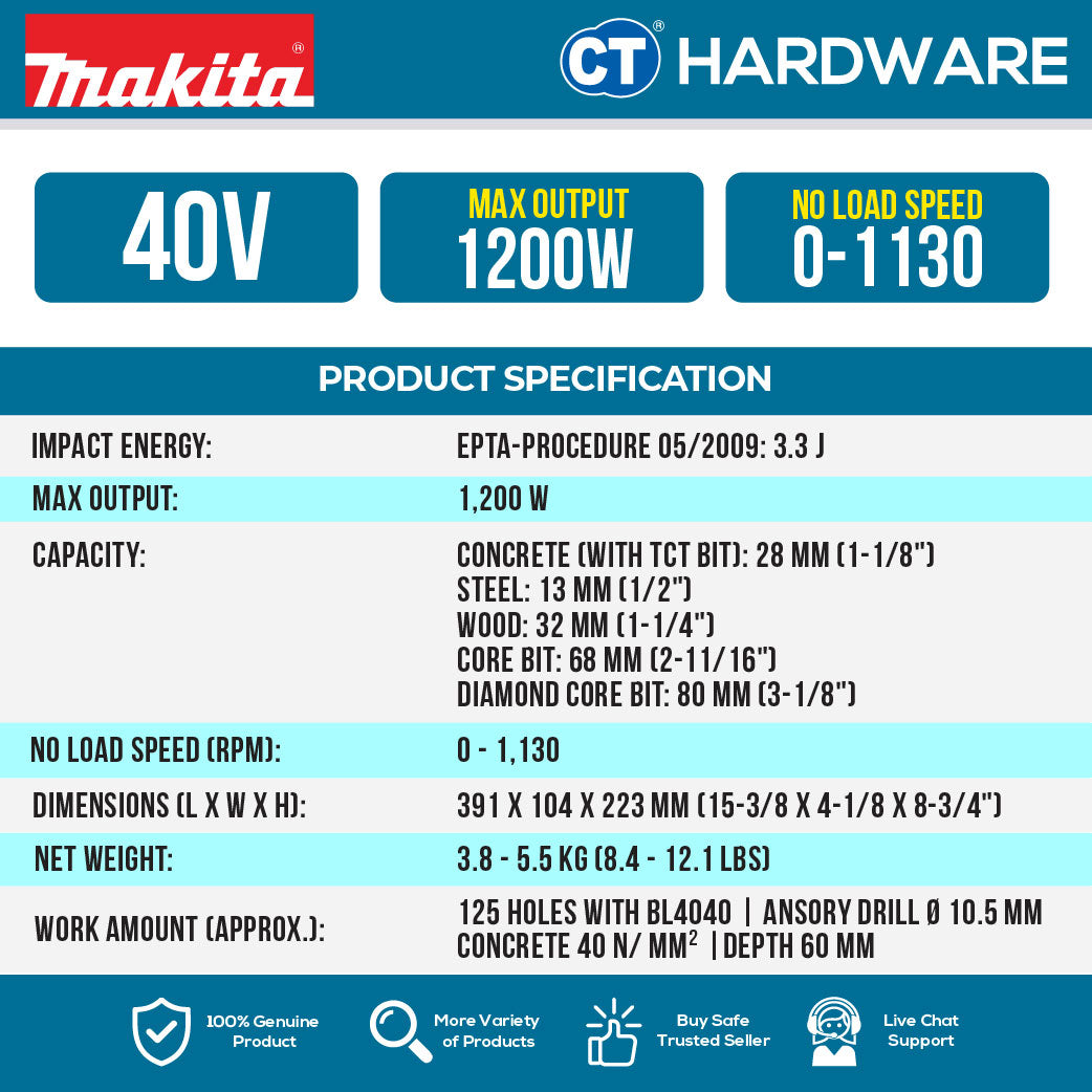 ![Makita HR011GZ | HR011GM202 Cordless Combination Hammer 40Vmax | 28 mm (1-1/8") [ HR001G ]](http://cthardware.com/cdn/shop/files/HR011G_5.jpg?v=1771213728&width=1214)