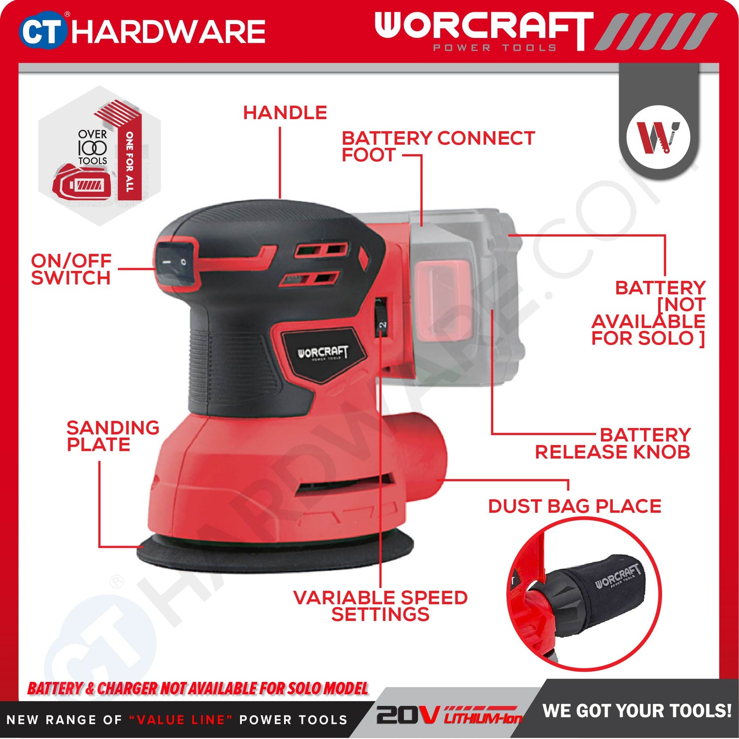 • ONE FOR ALL Battery System – Compatible with other Worcraft 20V tools.