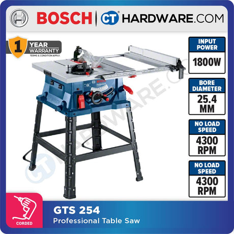 RM759.00Unit price /UnavailableBackorderedBosch GTS 254 Professional Table Saw 1800W 10" 254mm [0601B450L0 | GTS254]