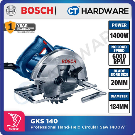 RM785.00Unit price /UnavailableIn stockBosch GKS 140 Professional Hand-Held Circular Saw 1400W 7″ 184mm [06016B30L1 | GKS140]