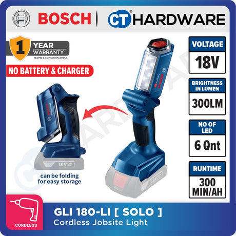 RM506.00RM586.00Unit price /UnavailableLow stockBosch GLI 180-LI SOLO Professional Cordless Jobsite Light 18V 300lm [06014A11L0 | GLI180LISOLO]