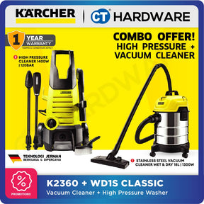 [COMBO-BUNDLE] Karcher WD1 CLASSIC Vacuum Cleaner + K2.360 High Pressure Washer [WD1CLASSIC + K2360]
