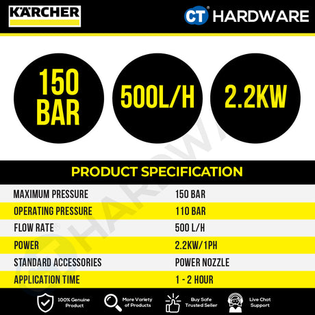 RM399.00Unit price /UnavailableBackorderedKarcher K 2 HR High Pressure Washer 1400W 110 Bar 6lpm [K2HR | 15992410]