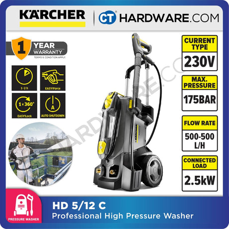 RM2,849.00RM2,999.00Unit price /UnavailableBackorderedKarcher HD 5/12 C Professional High Pressure Washer 2200W 175 Bar 500lph [HD512C | 15209000]