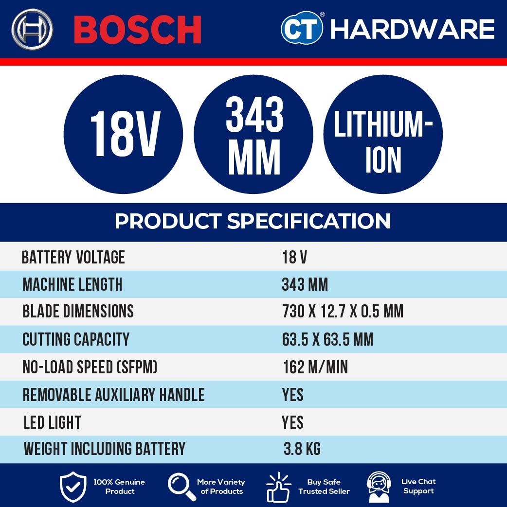 This cordless band saw is compatible with Bosch Professional 18V batteries, making it a perfect addition for users already invested in the Bosch 18V system. This product is supplied as a solo unit and does not include a battery or charger.