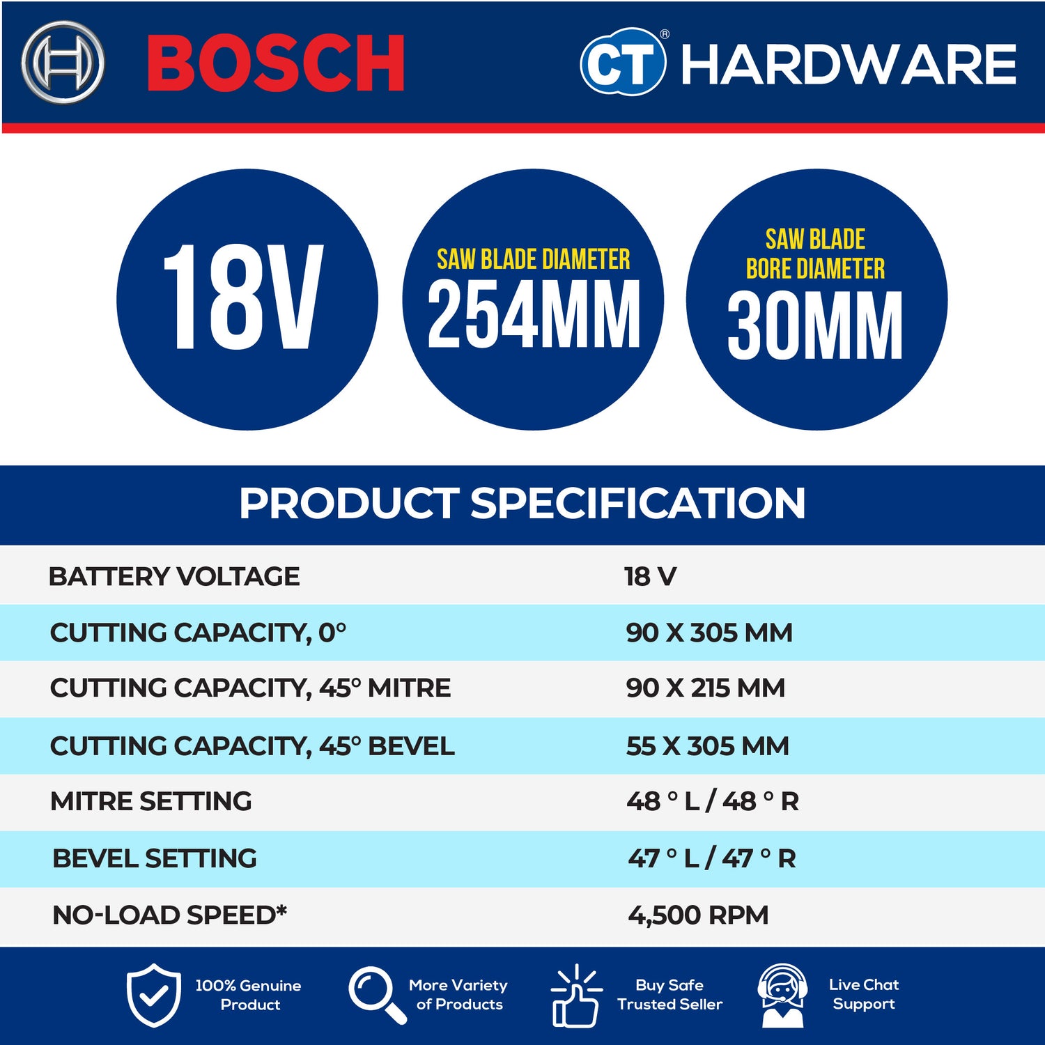 - Saw blade diameter: 254 mm