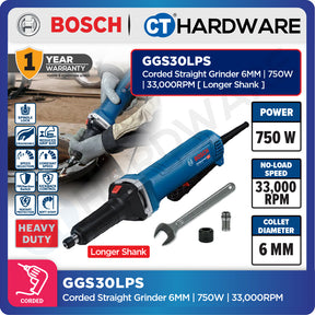 Bosch GGS30LPS Corded Straight Grinder 6MM | 750W | 33,000RPM [ LONGER SHANK ]