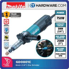 Makita GD0801C Die Grinder 6mm 750W With Speed Control