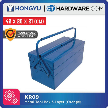 Hong Yu KR09 Metal Tool Box (Blue) 3 Layer 430mm X 200mm X 210mm