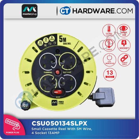 RM159.00Unit price /UnavailableMASTERPLUG CSU050134SLPX SMALL CASSETTE REEL WITH 5M WIRE,4 SOCKET 13AMP