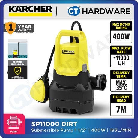 RM1,699.00Unit price /UnavailableVery low stockKarcher SP 11.000 DIRT Submersible Pump 400W [SP11000DIRT | 16458200]
