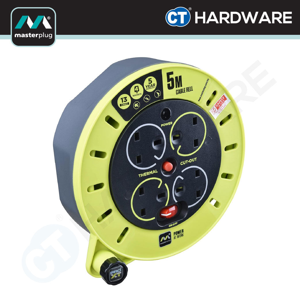 MASTERPLUG CSU050134SLPX SMALL CASSETTE REEL WITH 5M WIRE,4 SOCKET 13AMP