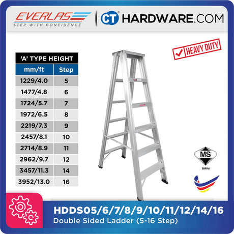 From RM191.00Unit price /UnavailableIn stockEverlas HDDS Series Heavy Duty Double Sided Ladder 5 Steps -16 Steps | 150kg Max Load