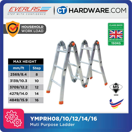 From RM425.00Unit price /UnavailableLow stockEverlas YMPRH Series Multi-Purpose Ladder 8 Rungs - 16 Rungs | 150kg Max Load | SIRIM