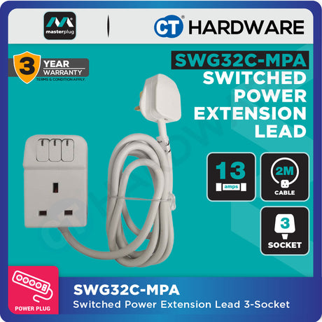 RM259.00Unit price /UnavailableVery low stockMasterPlug SWG32C Switched Power Extension Lead | 3 Socket
